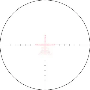 La retícula EBR-7C en primer plano focal contiene datos de subtensión útiles para tiro de competición o caza de largo alcance. Presenta un árbol de deriva en los dos cuadrantes inferiores para correcciones rápidas de viento y elevación. La variante 7C coloca números en los estadios inferiores en el exterior de los puntos de deriva, reduciendo la obstrucción alrededor de los estadios verticales.