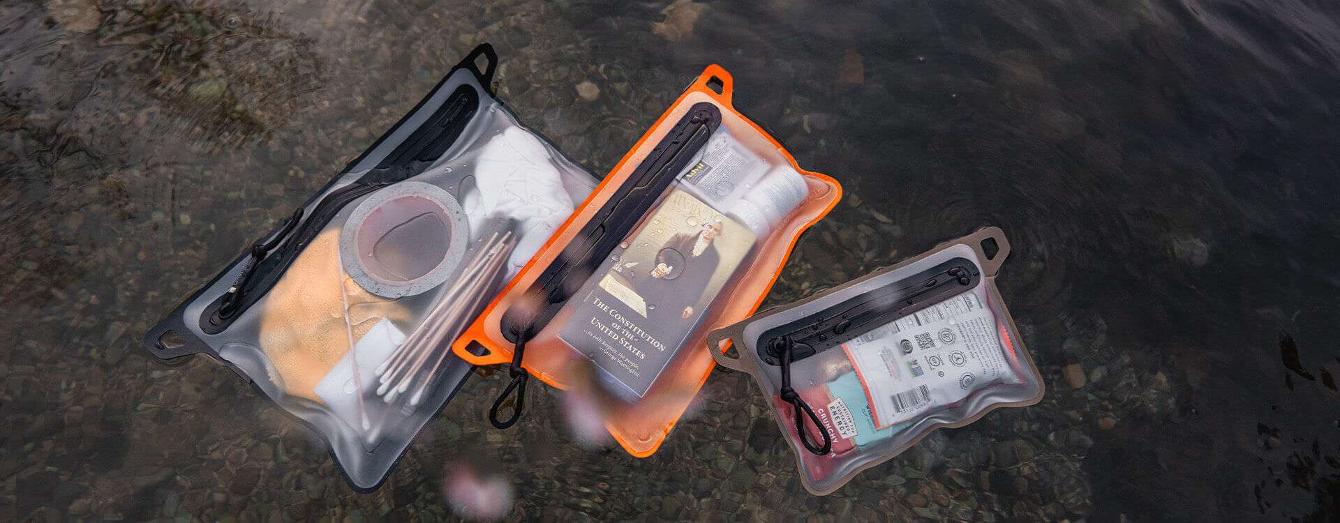 Waterproof pouch with window for easy ID. Durable, submersible.